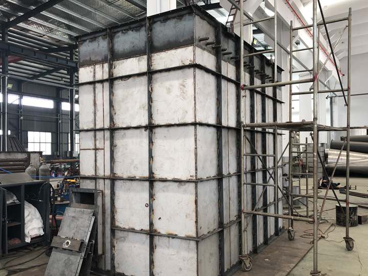 我(wǒ)公司本月(yuè)接到了貴(guì)州(zhōu)某股份公司的訂單,需要EMD離(lí)線清(qīng)灰布袋除塵器(qì)一台,日韩天天综合幹燥憑借著多年製(zhì)造幹燥(zào)設備(bèi)的經驗,很快設計出圖紙,緊(jǐn)急製作中,圖(tú)為製作現場!