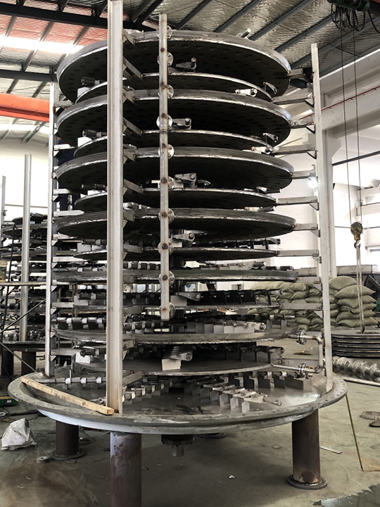 盤式(shì)連續幹(gàn)燥器是一種高效的傳導型連(lián)續幹燥設備。其獨特的結構和工作原理決定了它具有熱(rè)效率高、能耗低,占地麵積小、配置簡單、操作控(kòng)製方便、操作環境好等特點,廣泛適用於化工(gōng)、醫藥、農藥、食品、飼料、農副產品加工等行業的幹燥作業。在各行業使用實踐中深受好評。幹燥(zào)麵積4~180m 2,並提供與之相配套的種輔助設備,可滿足(zú)用戶對各種物料進行幹燥的需要。