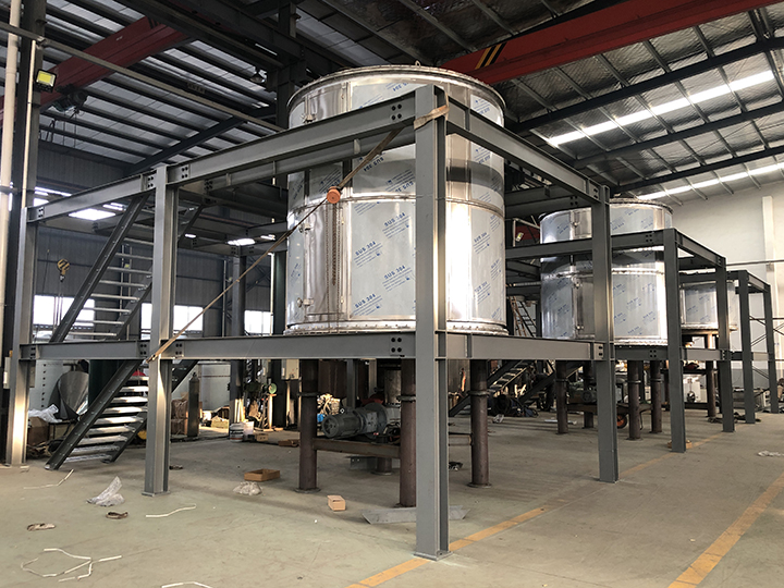 我公(gōng)司2020年11月接到了山東某股份公司的訂單,需要PLG型(xíng)盤式連續幹燥機三台。目前正在應客戶要求搭建鋼結構平台,圖為搭建現場!